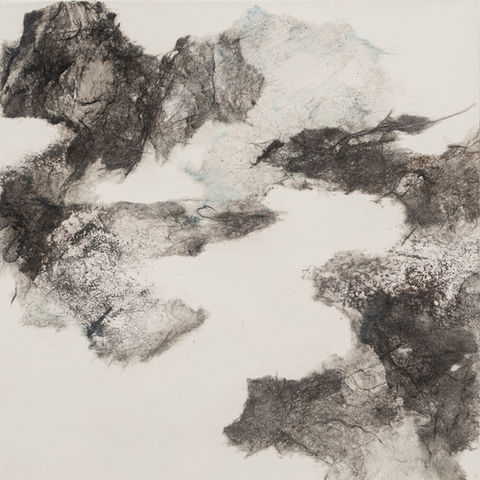 The reverse monotype series began with small, porcelain-like album leaves created by applying strips of paper coated with ink, mineral pigment, pulverized bronze and iron, to kaolin clay board, letting them dry, and then peeling the paper off, leaving a residue of paper fibers, pigment, metal, and ink. Wang sees this residue as a metaphor for the diasporic experience, trying to piece together the disparate threads of a cultural tradition from the distant past. “The album leaves take major elements of Chinese material culture, porcelain, bronze, ink and paper, and remix them into an altered state. Each material gets to express itself in a way it never did in the past, each material gets to be reborn.”